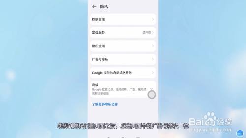 跳转到隐私设置页面之后,点击页面中的广告与隐私一栏。