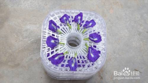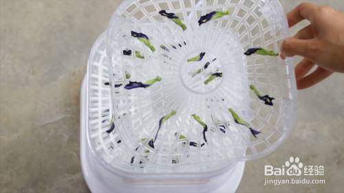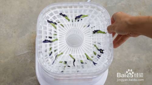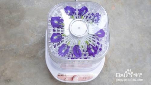 将蝶豆花放在干果机盘上。