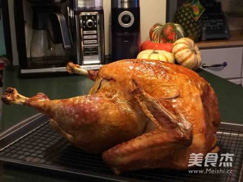 760分钟后,用温度计测试火鸡腿的温度175华氏度,鸡胸160华氏度,烤全火鸡就可以出炉了;