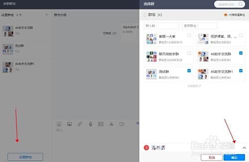 第二步,点击多群群发,进到功能页面,选择群组后保存设置;