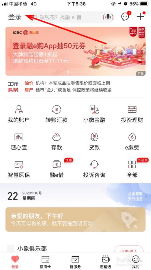 我们打开手机,点击一下工行手机银行系统图标,如下图。