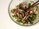 晾凉后去掉鸡皮,将鸡肉撕成丝