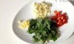 姜一半切末、一半切片,蒜切末,小米椒切碎,香菜切段