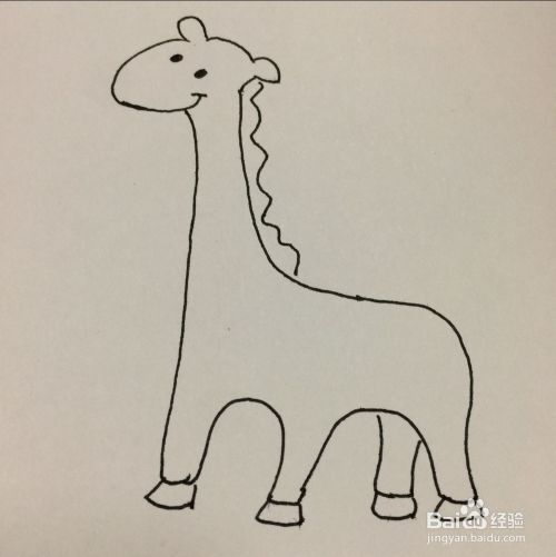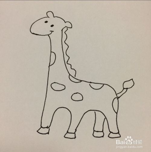 最后画好上翘的尾巴和身上的花纹。这样长颈鹿就画好了。