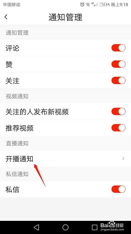 如果需要关闭开播通知功能,则点击红色开关,使其变为灰色即可。