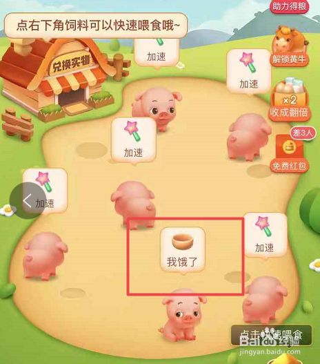 被使用加速道具加速国的小动物就会马上饿了,需要点击给他喂食哦。