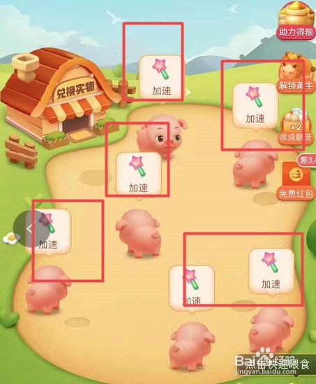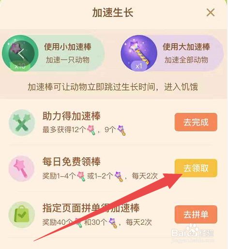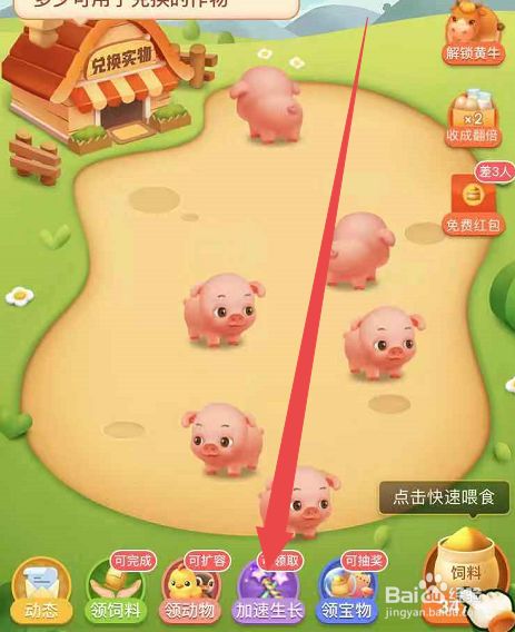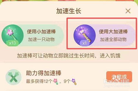 在加速页面内如果选择后面的大加速棒的话,就可以给多多牧场内饲养的所有的小动物加速啦。