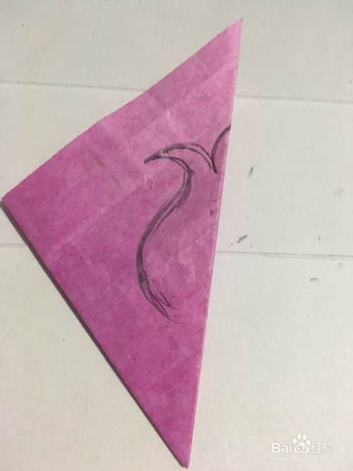 第三步 折叠完之后 拿起绘图铅笔 首先画上一个石榴的草图外线轮廓