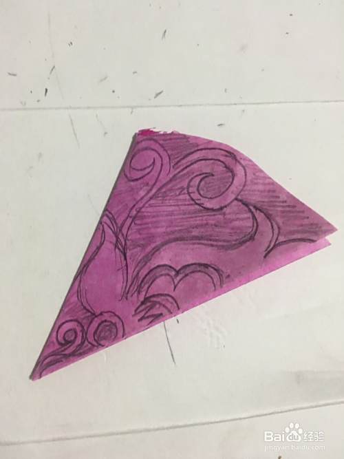 第五步 画完之后 再用绘图铅笔 把需要剪去的部分涂实 然后再剪去外围部分多余的彩纸