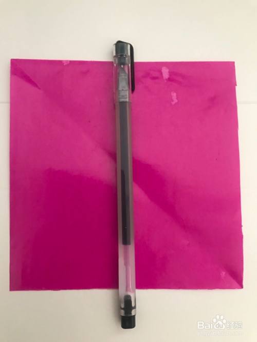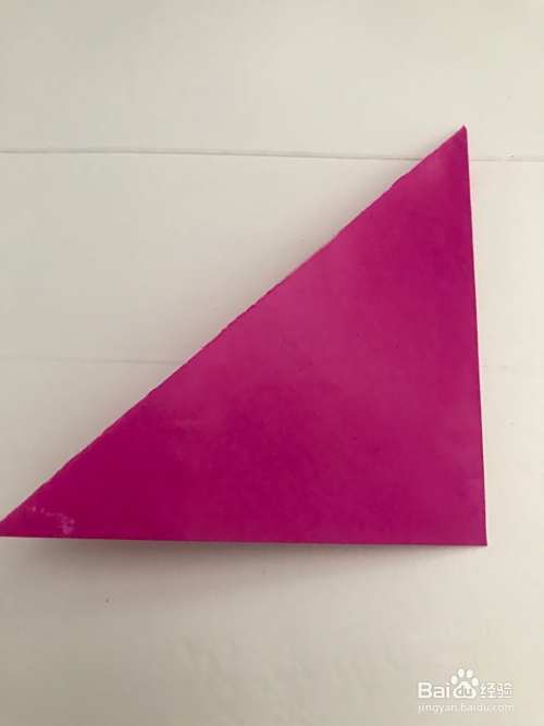 第一步 取一张长X宽都是16厘米的正方形红色彩纸 先把它从下向上对角折 然后再从右向左对角折叠
