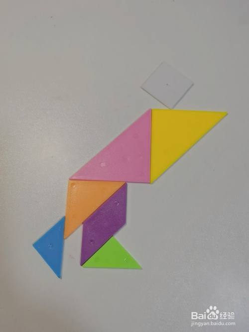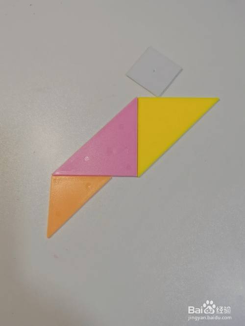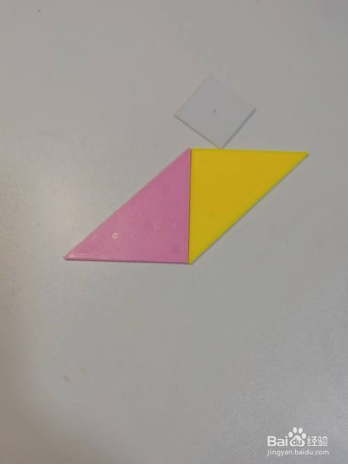 拿出一个白色正方形板放在黄色大号三角形板的上面,如图所示。