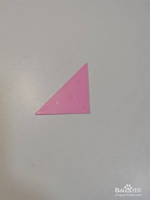 拿出一个黄色大号三角形板放在粉色大号板的右边,如图所示。