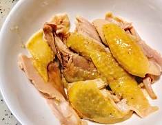 切撕一只鸡腿下来,取鸡腿肉切块。