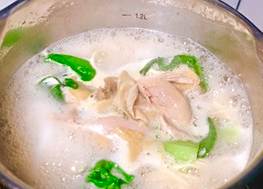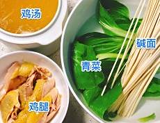 【备料齐全】碱面一份➕两根青菜洗净盐水里泡半小时清洁➕鸡汤➕鸡腿肉。