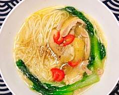 【煮面】顺序:面条-青菜-鸡腿肉-3g海盐。