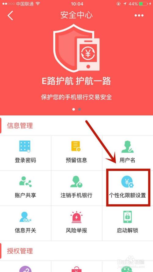 接着在显示出来的功能中,点击进入个性化限额设置选项。