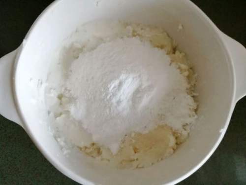 2煮熟的山药取出来,加入爱乐甜,捣成泥