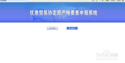 从电子口岸首页进去后,从首页的右中间位置可以看到优惠贸易协定原产地要素申报系统的图片,点击进入,点击进入后,会再次出现优惠贸易协定原产地要素申报系统字样,并出现无卡用户和有卡用户选项.