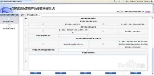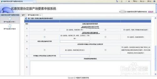 4 第三部分 直接运输承诺事项申报栏此部份选项多为单选且唯一具有排它性.请留意第1条的双重否定意思.是否经过非协定成员方中转.其它的都按实际情况选择后填入.香港中转的散货或货柜需要提供中转确认书未进行再加工证明文件.并在框中输入证明文件号码输入完毕后检查无误暂存并申报