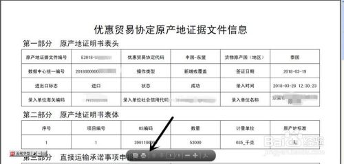 6查询到状态已经是成功的原产地证据文件后,点击低下查看明细/打印按钮后会跳出所录入的原产地证据文件内容.下拉至下面的打印按钮进行一个打印证据文件纸.此证据文件需要扫描后向申报时.随附在原产地证据文件栏中.