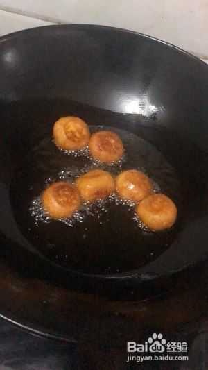 油温差不多50左右,然后关到最小火炸,像图中炸至金黄色即可