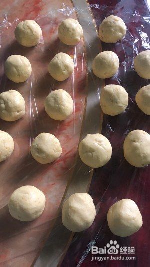 然后揉成一个个圆圆的红薯丸子,放置保鲜膜上面稍微稀释一下水份