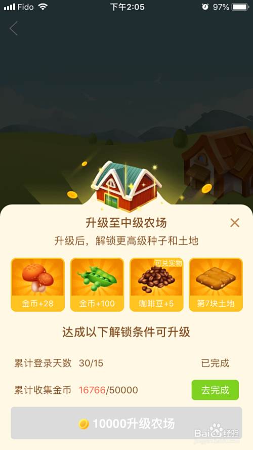 游戏是可以升级农场,增加农田地块的,如果种植单位时间产量最多的蔬菜,全天24小时不间断,理论上满足升级条件的50000金币,需要的时间大概35天。