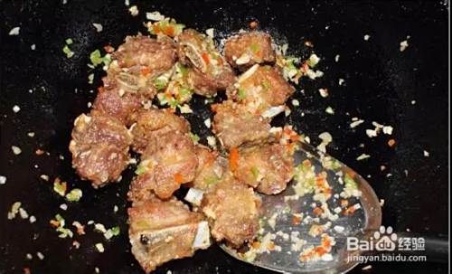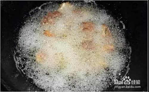 坐锅倒油,把排骨放进去炸,表面焦黄色就可以出锅备用