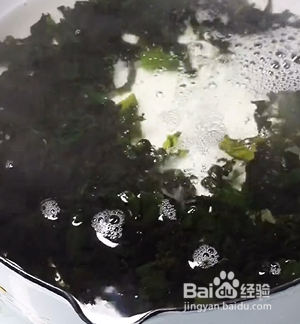 首先将裙带菜用冷水泡发10分钟,切成小段