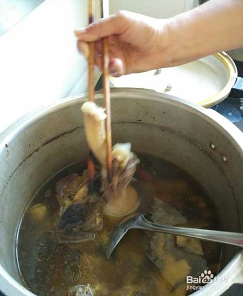 用高压锅来炖的好处就是在较短的时间内能把牛骨头炖的很烂。