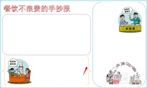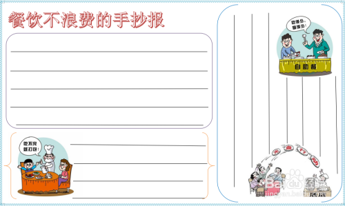 画一个边框,在左上角写上主题:餐饮不浪费的手抄报