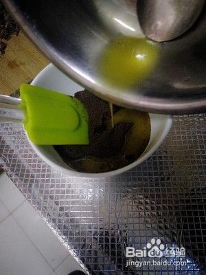 拿出模具,把混合好的巧克力牛奶液倒入模具,调整表面光滑,无汽泡