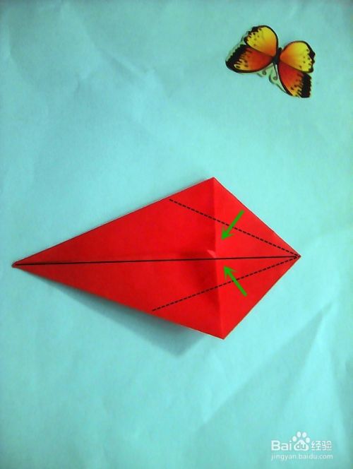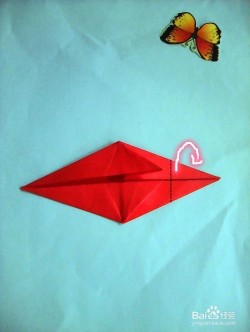 正反两面的小三角分别向后折,出现鲤鱼的腹鳍。