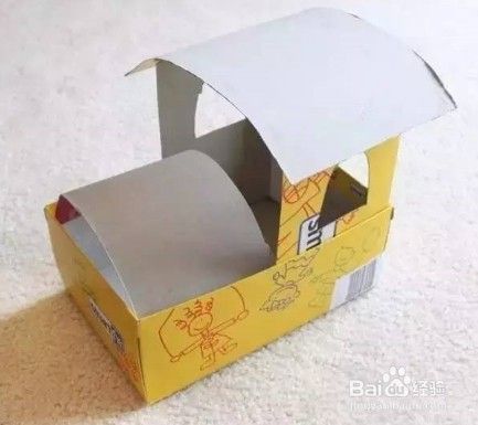 把拆解后中间的硬板弯曲一下,固定在鞋盒上,前面和后面都固定上