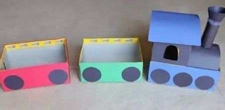 家里放的鞋子的纸箱,可以给孩子留着,动动手就能让纸箱变成一个个可爱的小火车啦,随时随地给宝宝做玩具!
