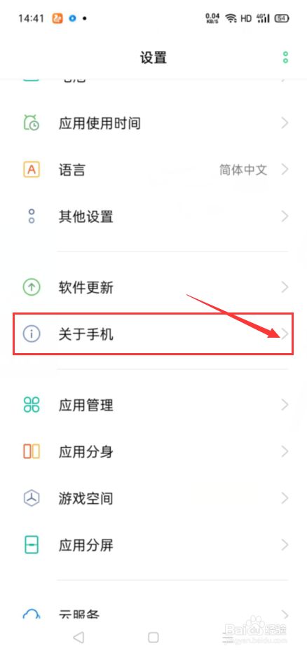 在手机设置界面,我们点击打开关于手机按钮,