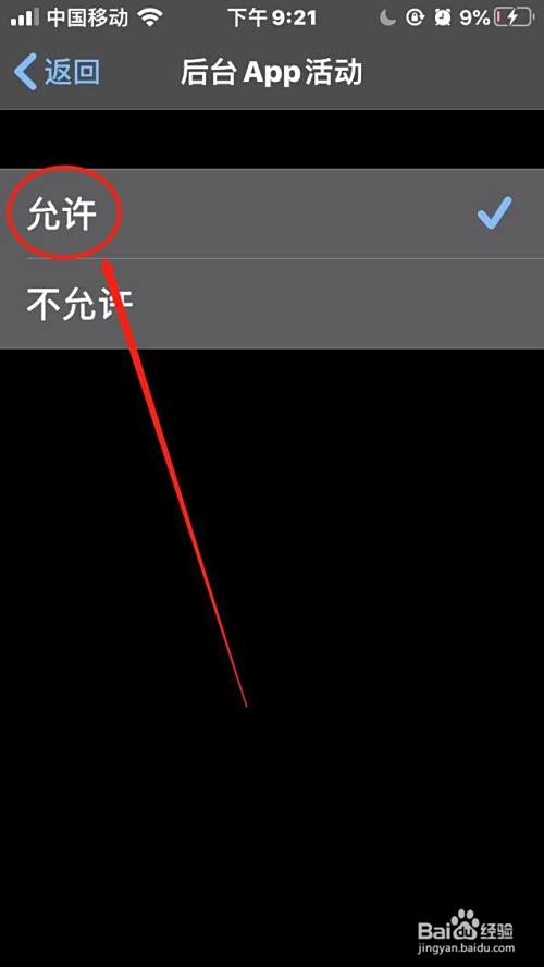 在“后台app”权限设置页面,由“允许”设置为“不允许”,即可设置禁止后台app活动。