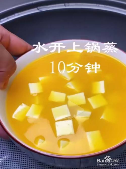 再把豆腐块放进鸡蛋里面,上锅蒸10分钟。