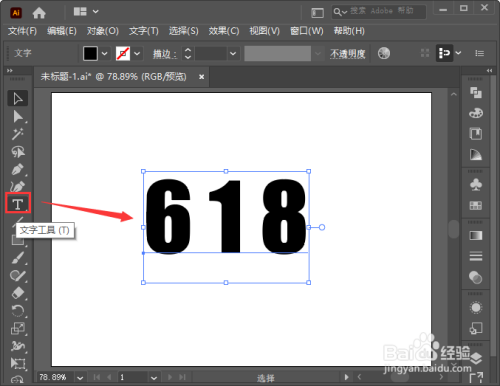 我们用【文字工具】输入自己需要的文字或数字,比如:618,如图所示。