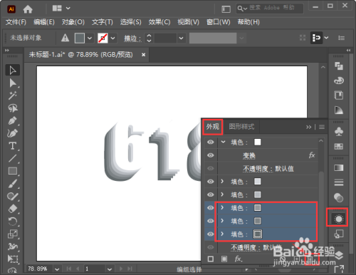 AI怎么制作618立体字,主要用到图形样式中的文字效果和外观中的填色,下面把制作618立体字的操作方法分享给大家。
