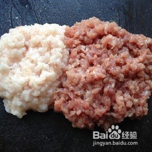 肥瘦肉去皮,肥肉和瘦肉分开,先切薄片,再切丝,最后切成石榴籽大小的粒,粗粗剁几下。
