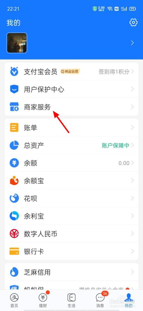 打开支付宝,在我的选项下,打开商家服务选项。在我的店铺选项下,打开我的订单选项,即可查看订单。
