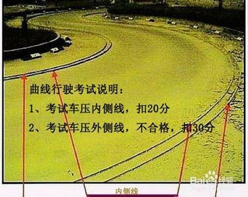 把车尽量行驶在路的中间,因为是曲线行驶,而且车辆速度比较慢,所以,发现有车辆跑偏的情况下就要及时修正,尽量把车控制在中间。