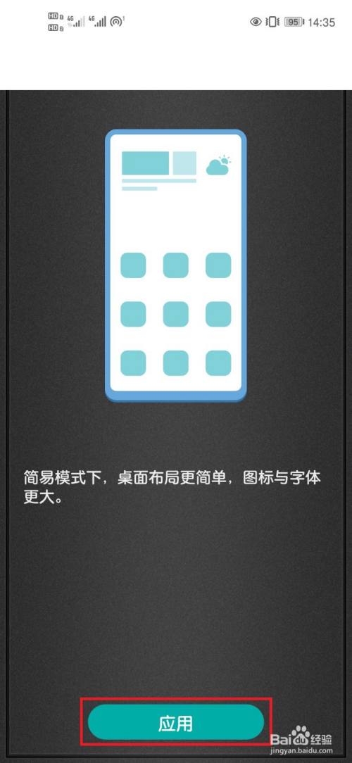 第五步点击应用,回到桌面可以看到手机已经进入简易模式,如下图所示: