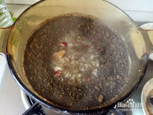 8、将何首乌倒入锅中,搅匀,继续焖煮3分钟