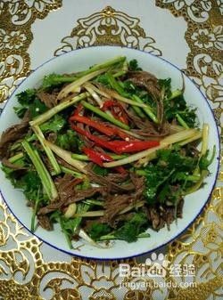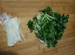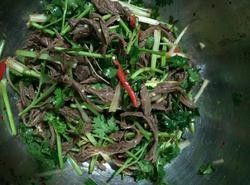 6.用筷子把放好调料的猪心和香菜大葱拌均匀!