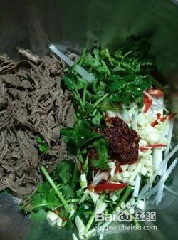 5.把一切准备好的资料放一同,多少按自己口味调整,需求做的是加一点点水!否则拌出来太干没滋味!