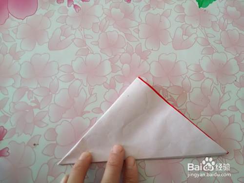 按图把正方形折好,按图用尺子量好尺寸,在另一条边上画上记号(如图)。