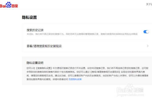 最后一个是隐私设置,是对你搜索记录的保留还是删除进行开启或关闭;个人设置为关闭状态。