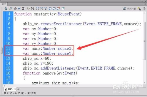 接着,定义两个变量numx和numy,用于保存鼠标的X轴和Y轴坐标值。